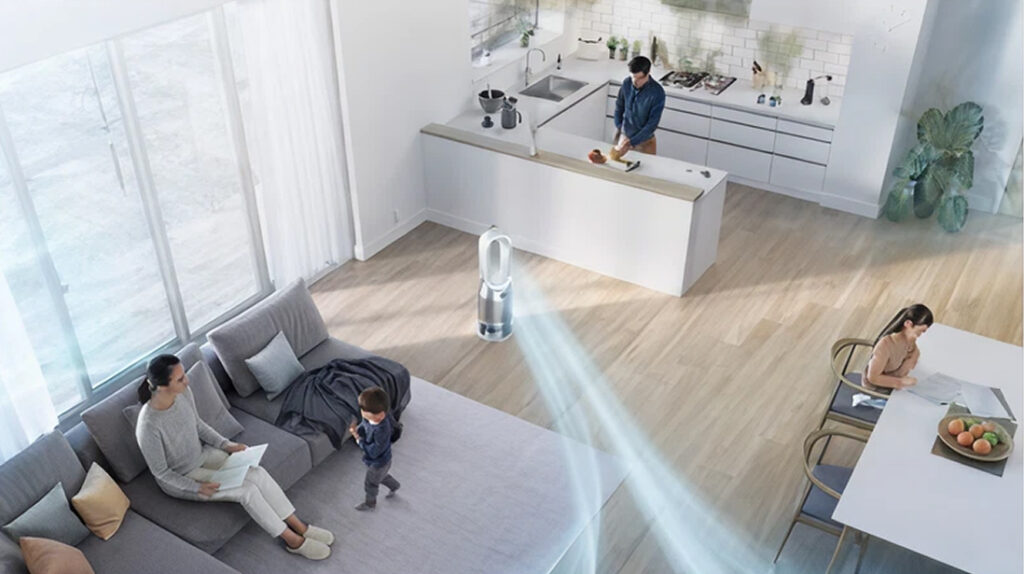 Технологијата Dyson Air Multiplier™ меша и циркулира прочистен, навлажнет воздух низ целата просторија.⁸